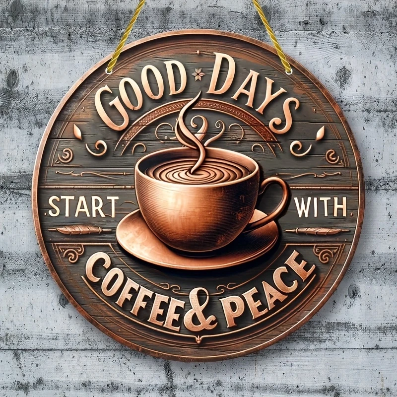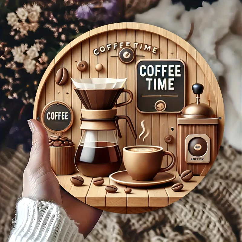 Add a touch of nostalgic charm to your space with this vintage coffee-themed wooden disc decoration. This unique 2D circular plaque features classic coffee house imagery that instantly creates a warm and inviting atmosphere. Crafted from high-quality wood material, the sign is designed to provide a rustic aesthetic that complements any modern or traditional interior. It is the perfect accent piece for local cafes, home coffee stations, or stylish bar areas looking for a retro vibe. The detailed artwork serves as an excellent backdrop for social media photography or professional photo shoots. Its lightweight construction allows for easy mounting on walls or effortless placement on shelves and countertops. This decorative piece captures the timeless essence of coffee culture, making it a must-have for caffeine enthusiasts. The durable print ensures that the vintage colors stay vibrant and eye-catching for long-term display. Whether used as a standalone focal point or part of a gallery wall, it elevates the personality of any room. Enhance your home or business environment with this professional-grade decorative prop that celebrates the art of the brew.
